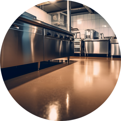 Impermeabilização de cozinha industrial com poliuretano oferece proteção resistente e duradoura.